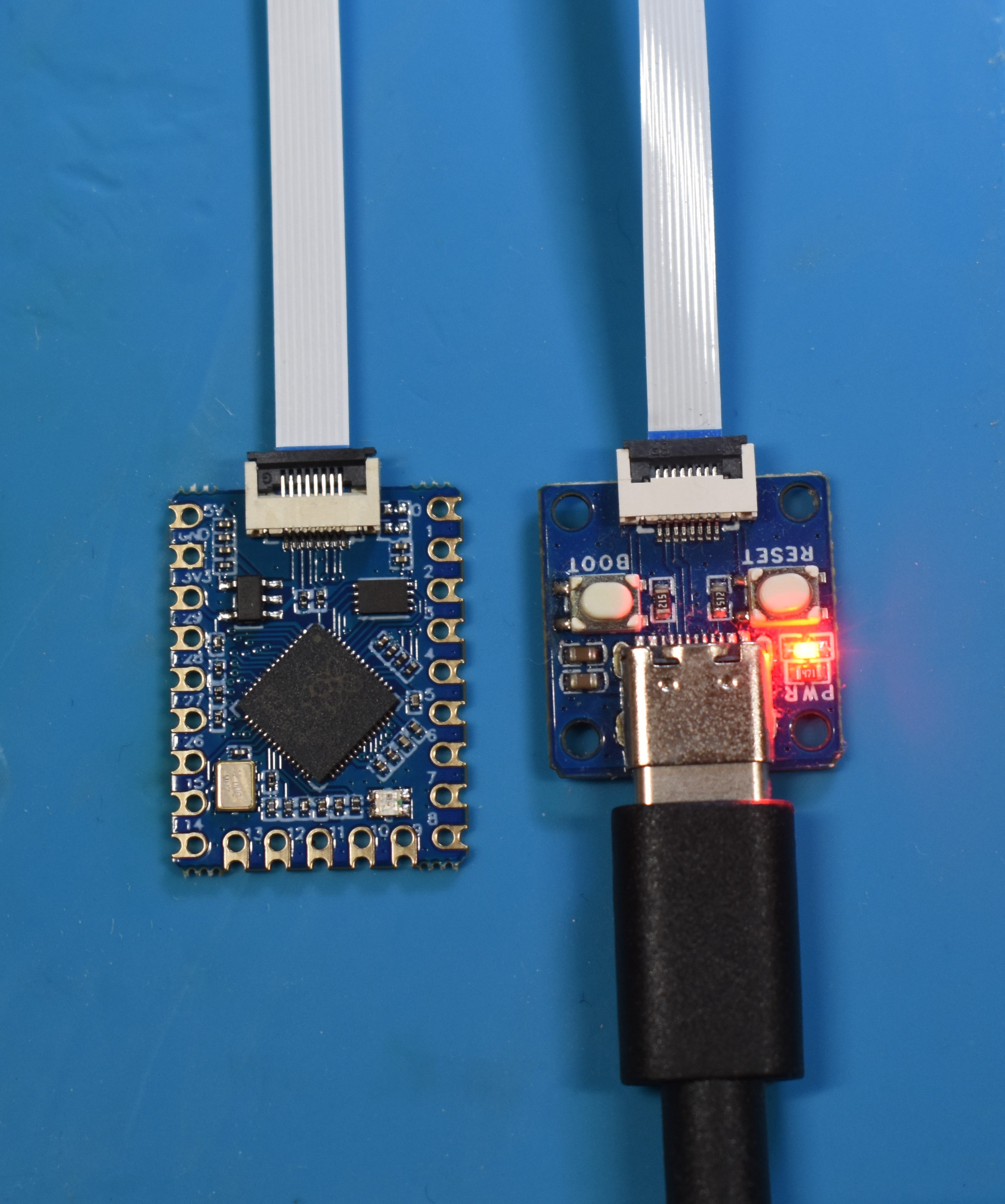 RP2040-Tinydevelopment board comes with an additional "flashing attachment" board.