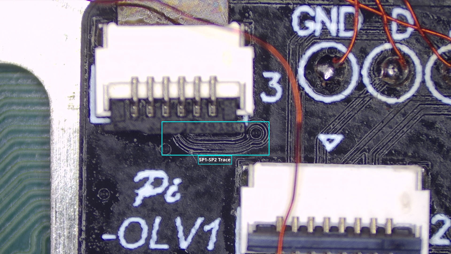 SP1andSP2points, ensure the solder flows between the pad on the ribbon cable and each end of the capacitors.